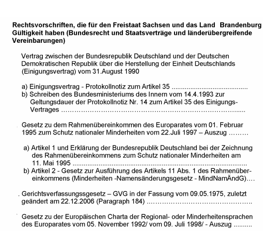 | Mit der Wiedervereinigung wurden neben dem Einigungsvertrag viele Gesetze, Verordnungen und Erlasse durch den Bundestag, den Bundesrat und die Landesparlamente verabschiedet. Nachfolgend sehen sie die Zusammenfassung, der vom Bund und dem Freistaats Sachsen verabschiedeten Gesetze und Verordnungen. | ||||||